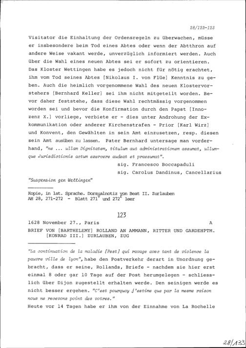 Schreiben von Francesco Boccapaduli, Nuntius und Bischof von Citta di Castello, an die Benediktinermönche von Wettingen und an Bernhard Keller, Grosskellner