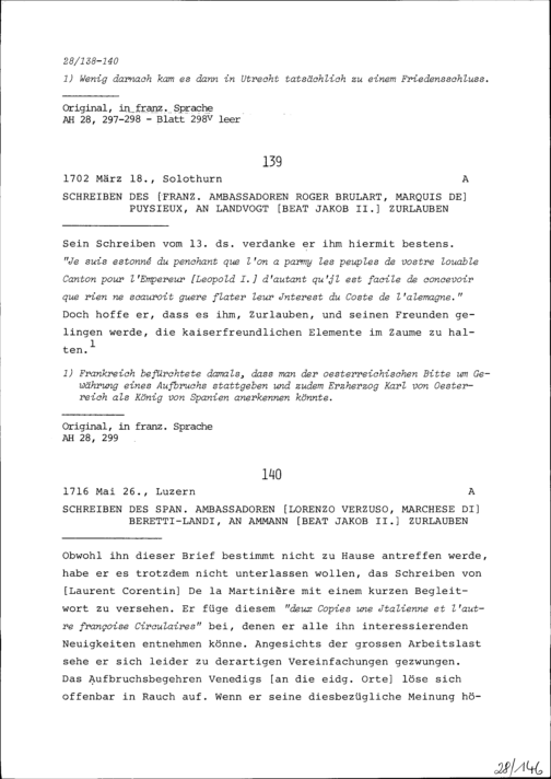 Schreiben von Laurent Corentin de la Martinière an Beat Jakob II. Zurlauben
