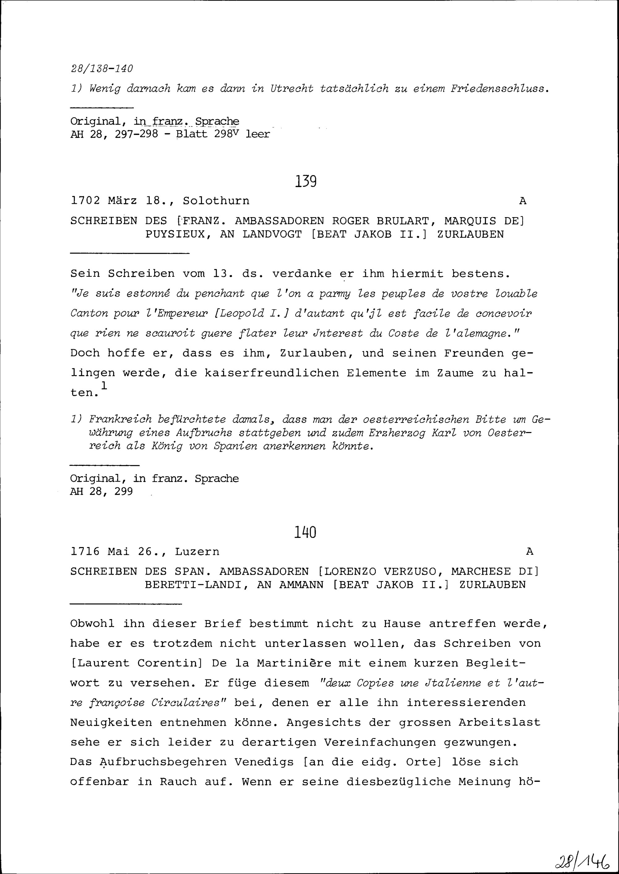 Schreiben von Lorenzo Verzuso, Marchese di Beretti-Landi, Ambassador von Spanien, an Beat Jakob II. Zurlauben, Ammann