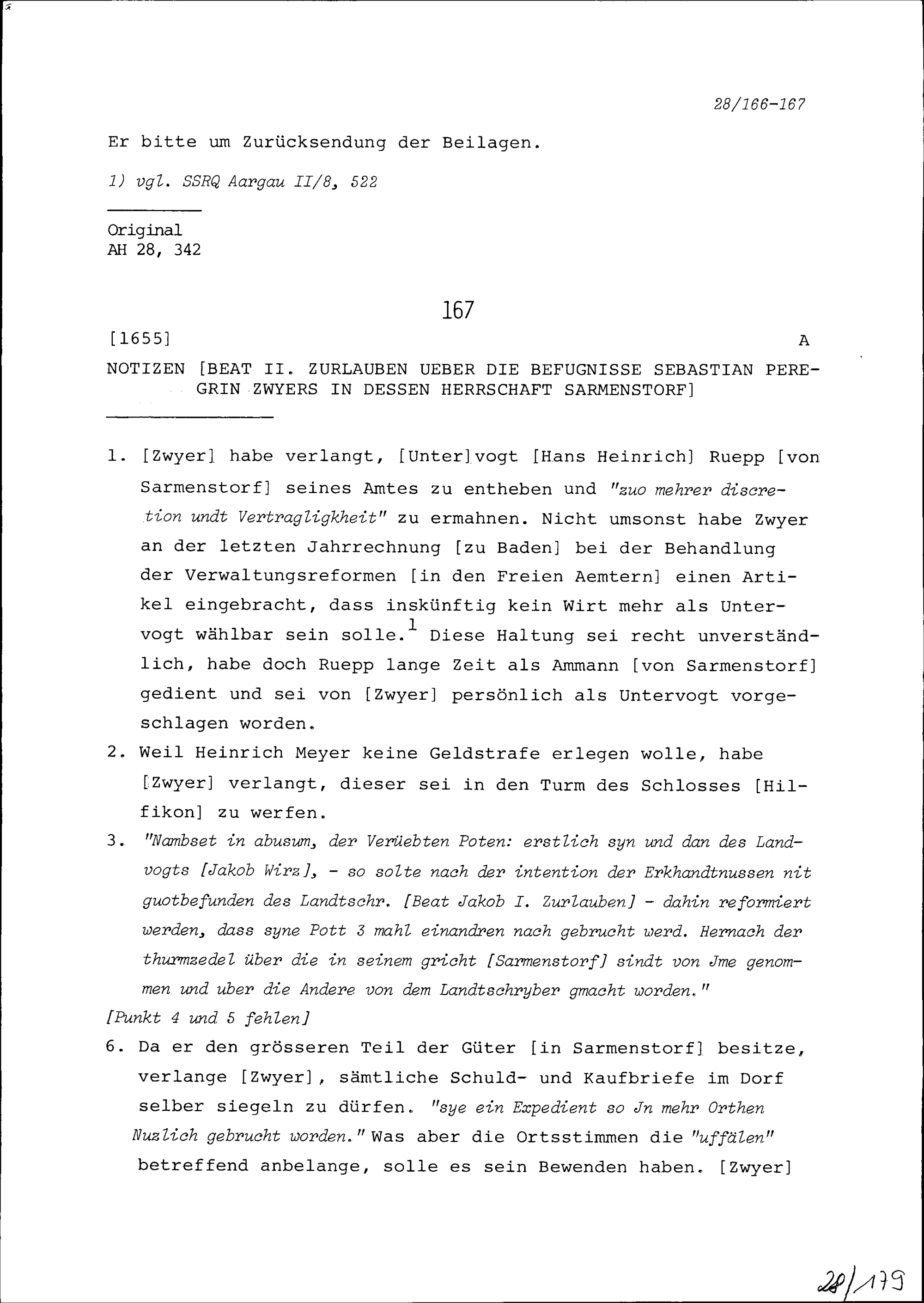 Schreiben von Beat Jakob I. Zurlauben, Landschreiber, an Beat II. Zurlauben