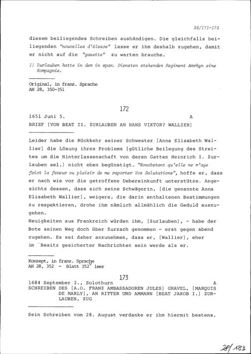 Schreiben von Roger Brûlart, Marquis de Puysieux, Ambassador von Frankreich, an Beat...