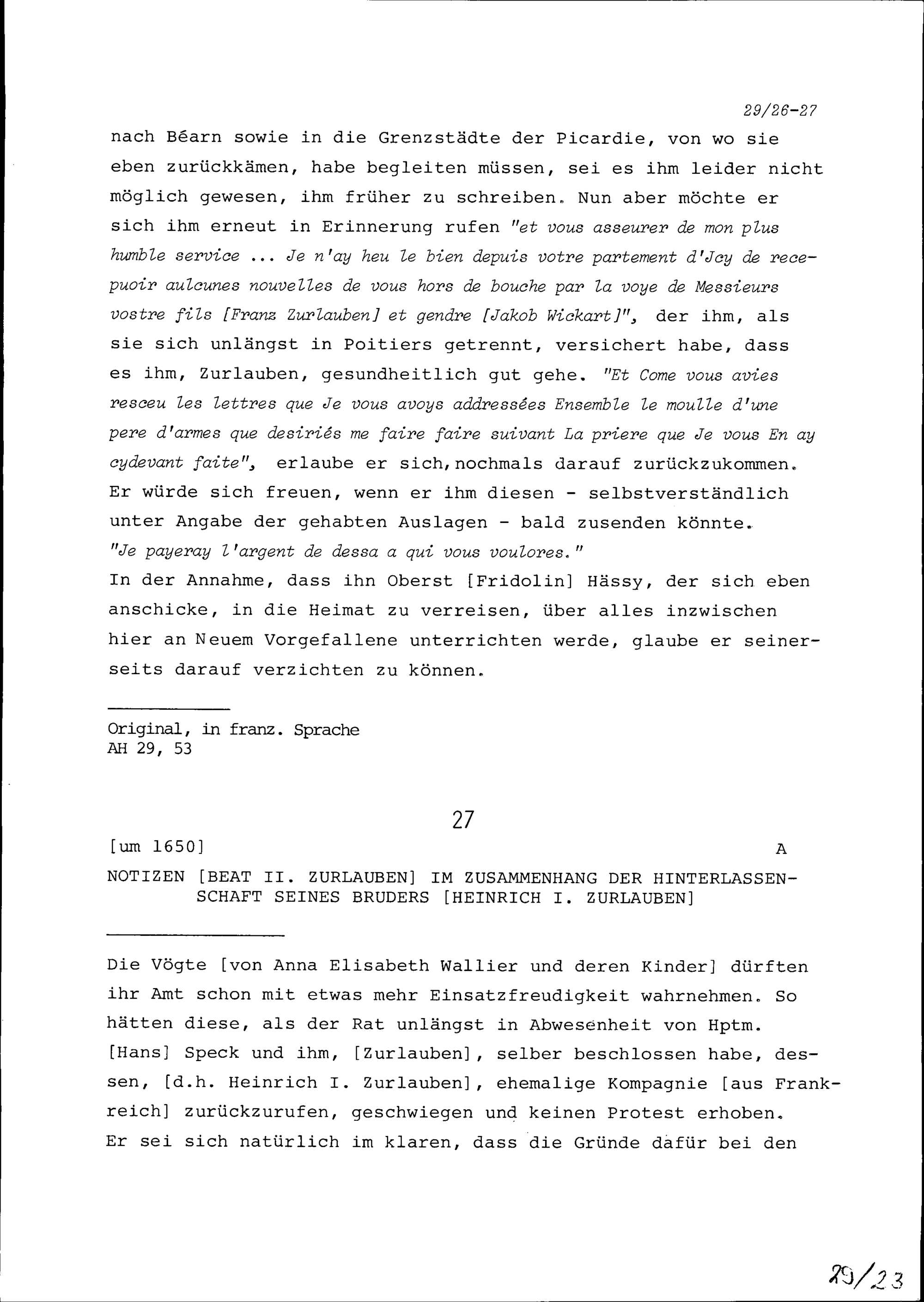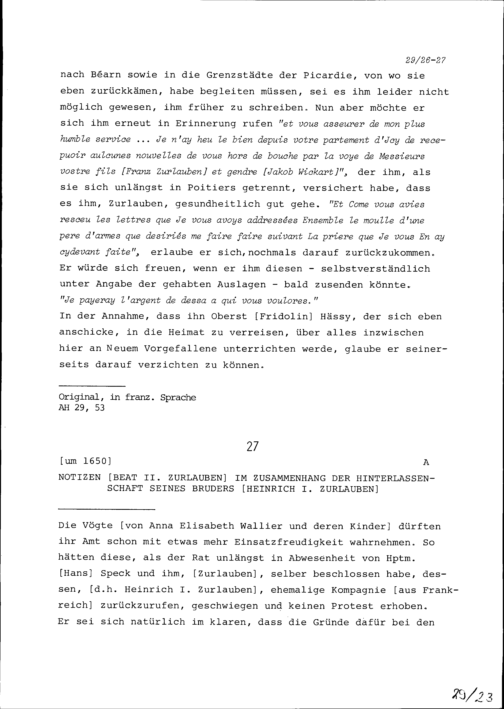 Schreiben von Abraham de Poncher, Dolmetscher, an Konrad III. Zurlauben, Ammann,...
