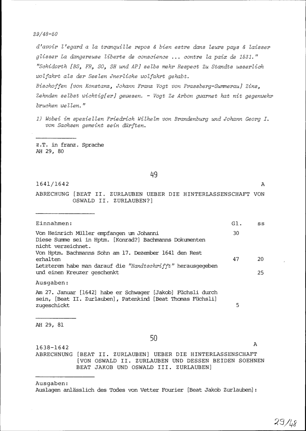 Notiz von Beat II. Zurlauben, insbesondere über Sebastian Peregrin Zwyer und den ersten Villmergerkrieg