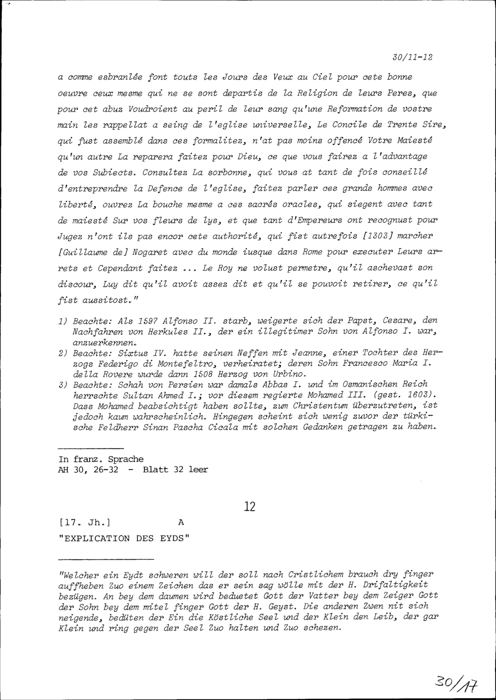 Vortrag, der in der Angelegenheit von Charles III. Créqui de Blanchefort, französischer Ambassador beim Heiligen Stuhl, vor Ludwig XIV., König von Frankreich, gehalten wurde