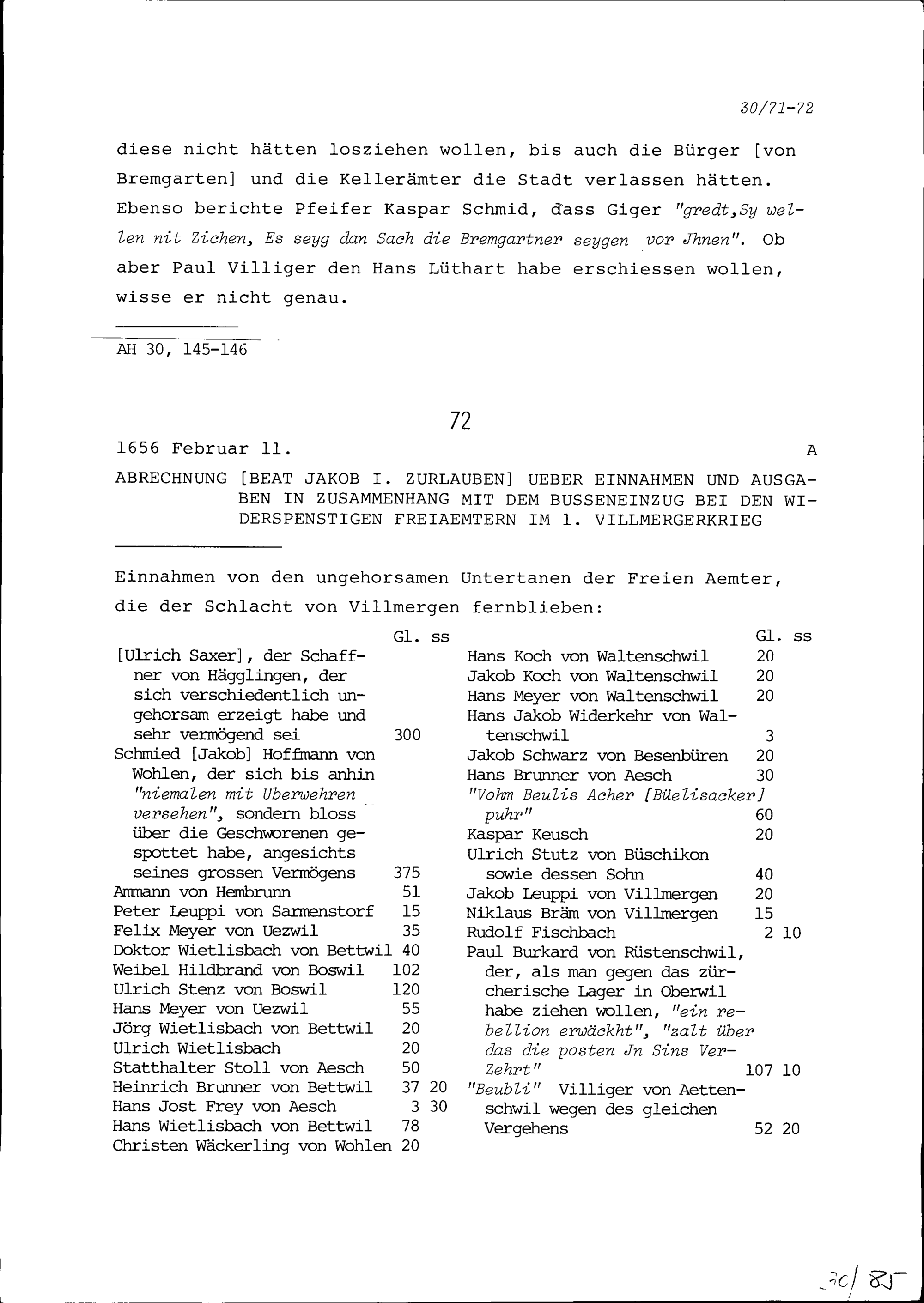 Bericht über die widerspenstigen Meienberger im Ersten Villmergerkrieg