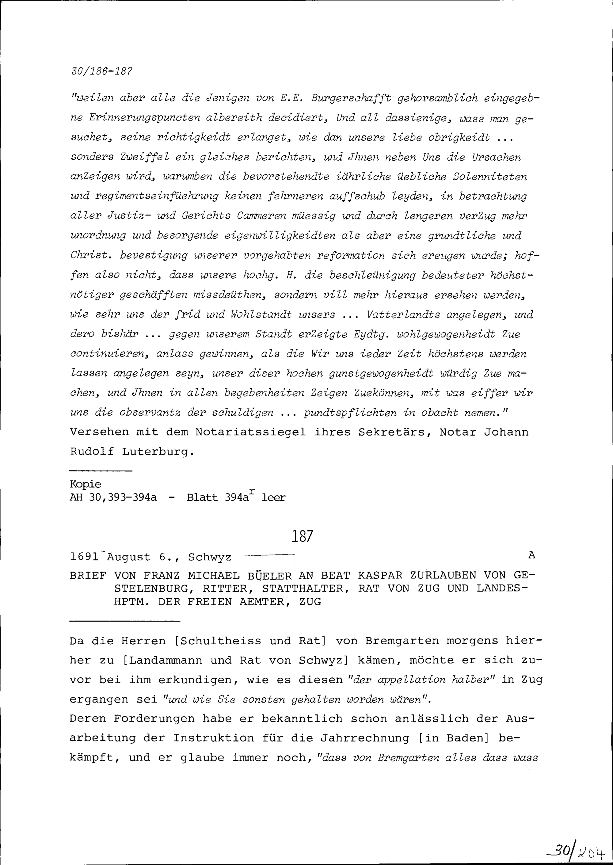 Schreiben der verordneten Ausschüsse der Bürgerschaft der Stadt Basel an die Gesandten der Dreizehn Orte in Baden