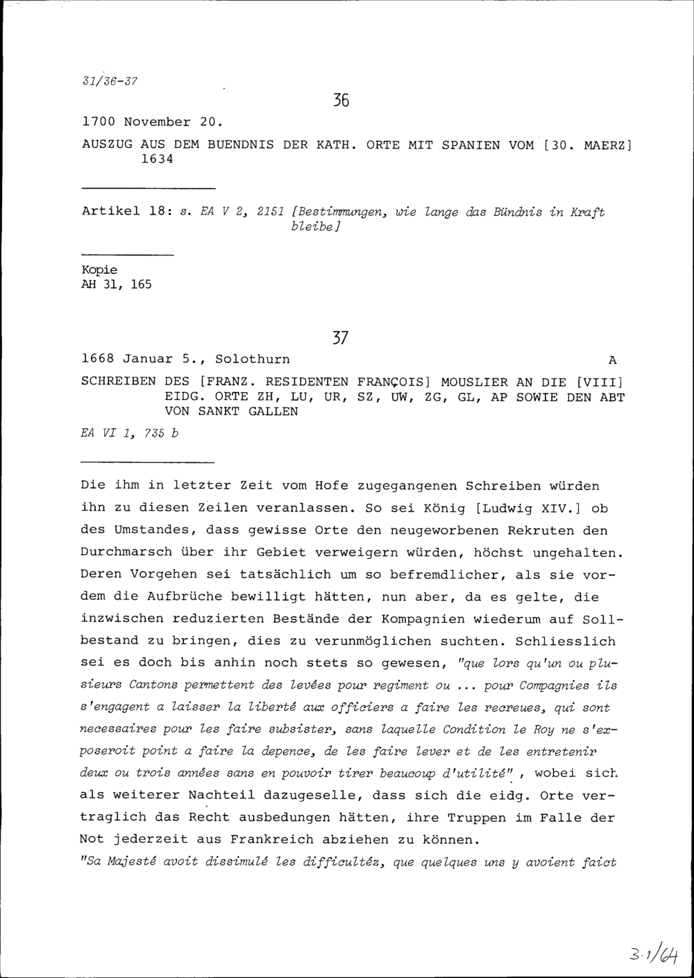 Schreiben von François Mouslier, Resident von Frankreich, an die Acht Eidgenössischen Orte Zürich, Luzern, Uri, Schwyz, Unterwalden (Ob- und Nidwalden), Zug, Glarus, Appenzell sowie den Abt von Sankt Gallen