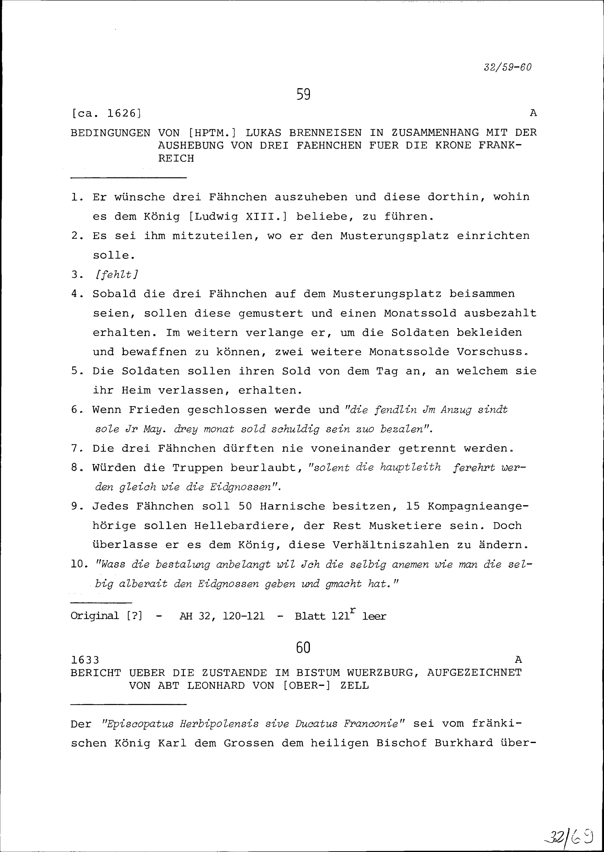 Bericht über die Zustände im Bistum Würzburg, aufgezeichnet von Leonhard von Oberzell, Abt