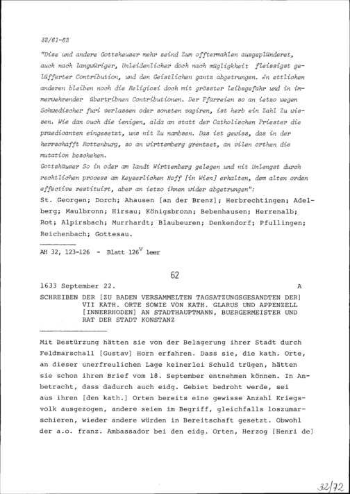 Zusammenstellung jener Klöster in Schwaben, im Elsass und im Schwarzwald, deren Konventualen vor den schwedischen Truppen flüchten mussten