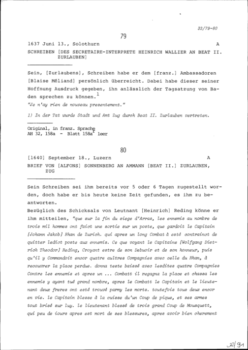 Schreiben von Alfons von Sonnenberg an Beat II. Zurlauben, Ammann, Zug