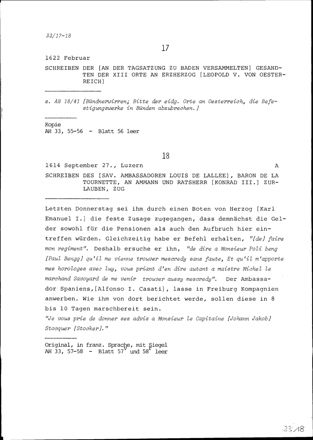 Schreiben von Louis de Lallée, Baron de la Tournette, Ambassador von Savoyen, an...