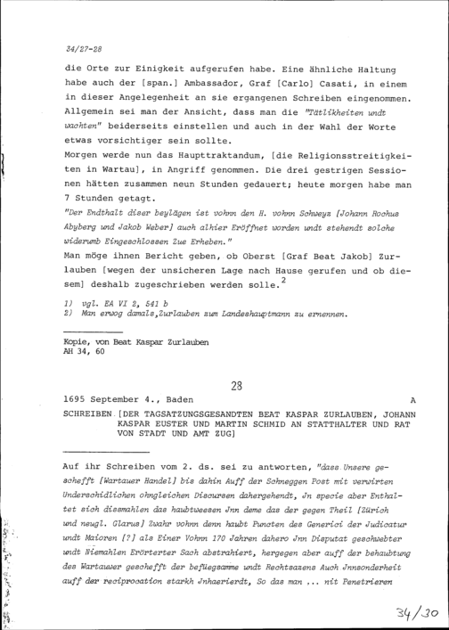 Schreiben von Beat Kaspar Zurlauben, Ammann, von Johann Kaspar Euster und von Martin...