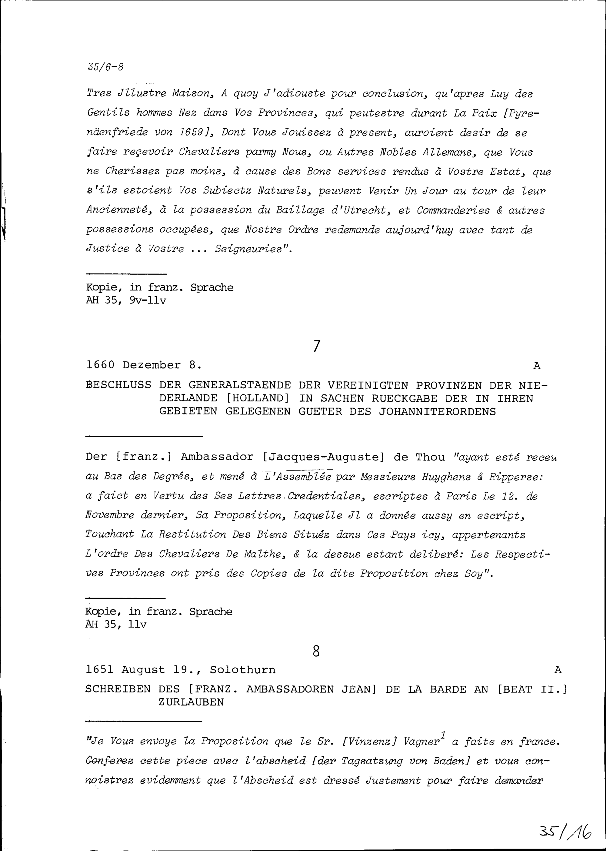 Schreiben von Jean de Lascaris, Grossmeisters des Malteserordens, an die Generalstände der vereinigten Provinzen der Niederlande