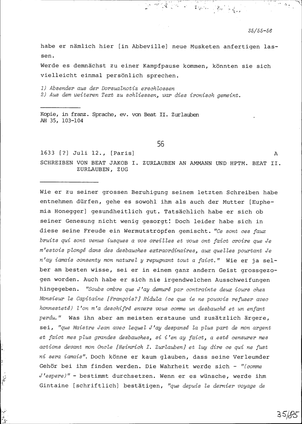 Schreiben von Heinrich I. Zurlauben an Alfons von Sonnenberg