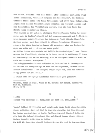 Schreiben von Heinrich I. Zurlauben an Beat II. Zurlauben, Ammann, Zug