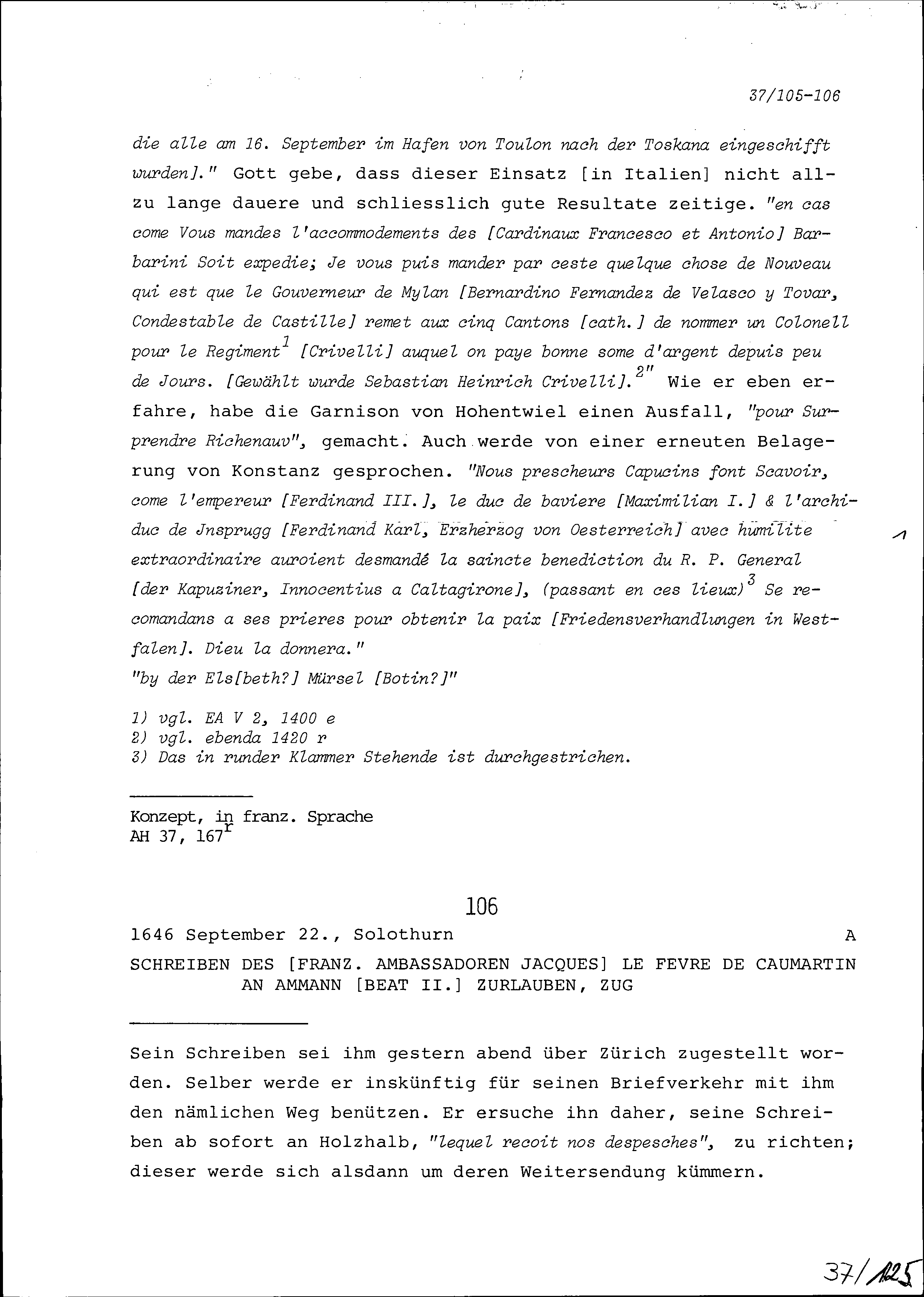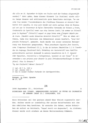 Schreiben von Beat II. Zurlauben an Jacques Le Fèvre de Caumartin, Ambassador von Frankreich