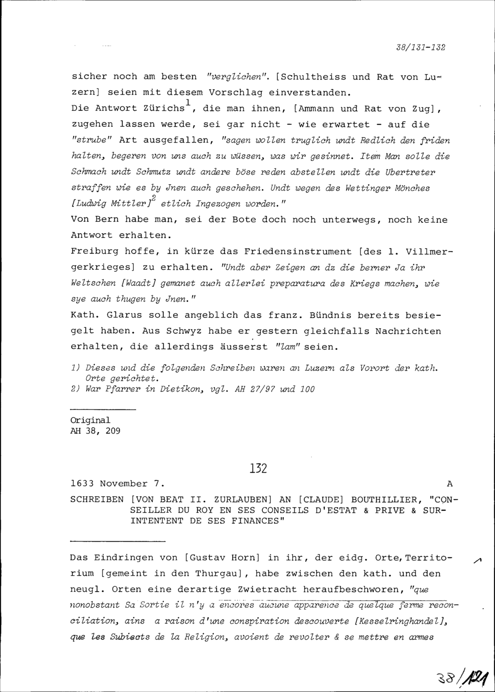 Schreiben von Kaspar Pfyffer an Beat II. Zurlauben