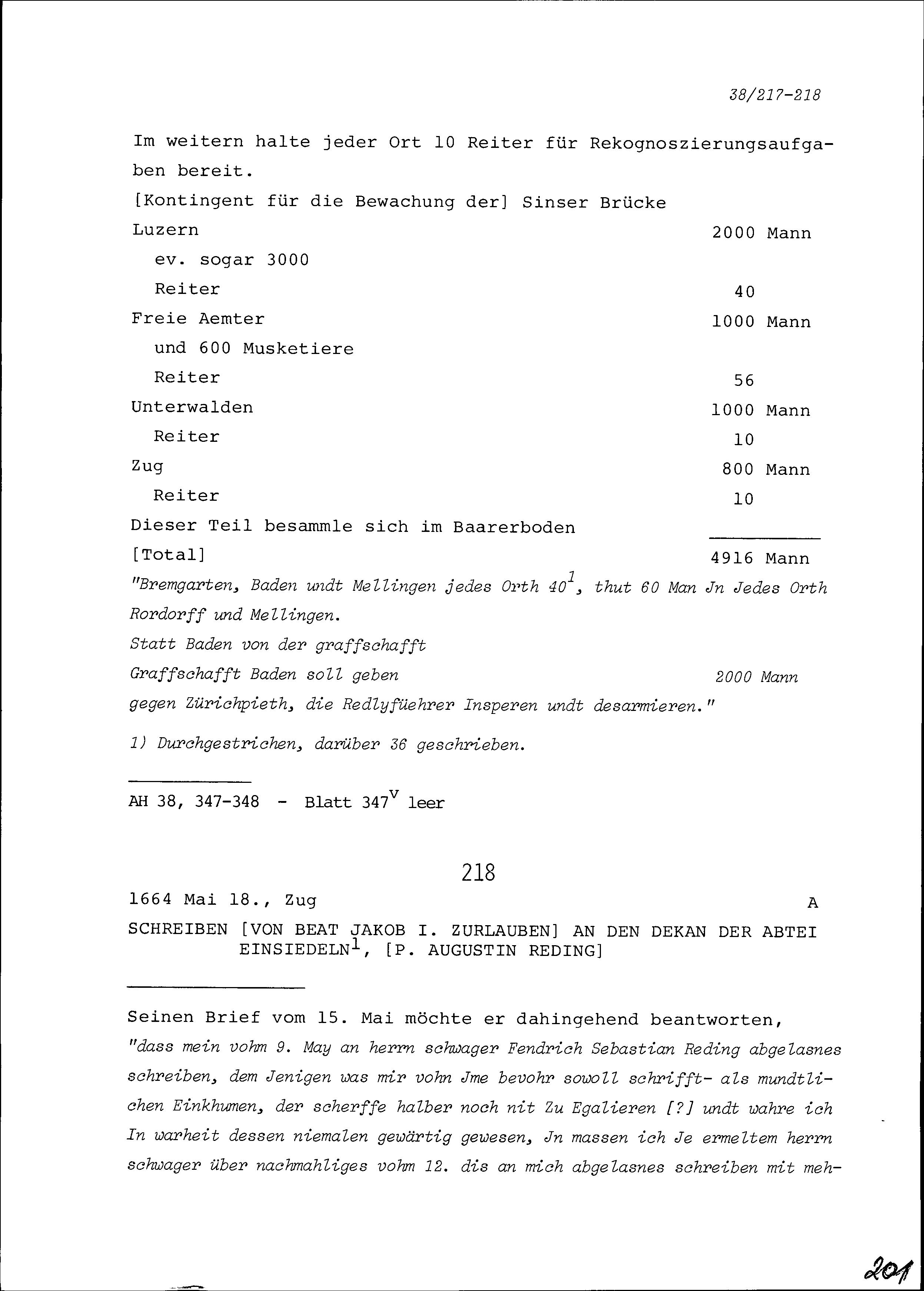 Notiz über die Verhandlungen des Kriegsrats der Fünf Katholischen Orte in Luzern