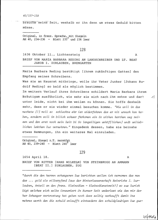 Schreiben von Rudolf Mohr an Beat Jakob I. Zurlauben, Statthalter, Zug