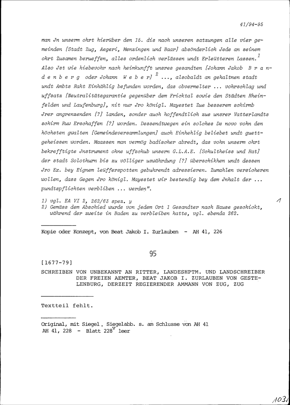 Schreiben des Ammanns und Rats von Stadt und Amt Zug an Michel-Jean Amelot, Marquis...