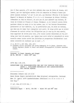 Schreiben von Niklaus Weiss, Rat, an Beat Jakob I. Zurlauben, Landeshauptmann der...