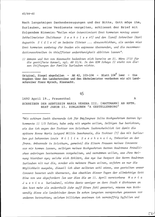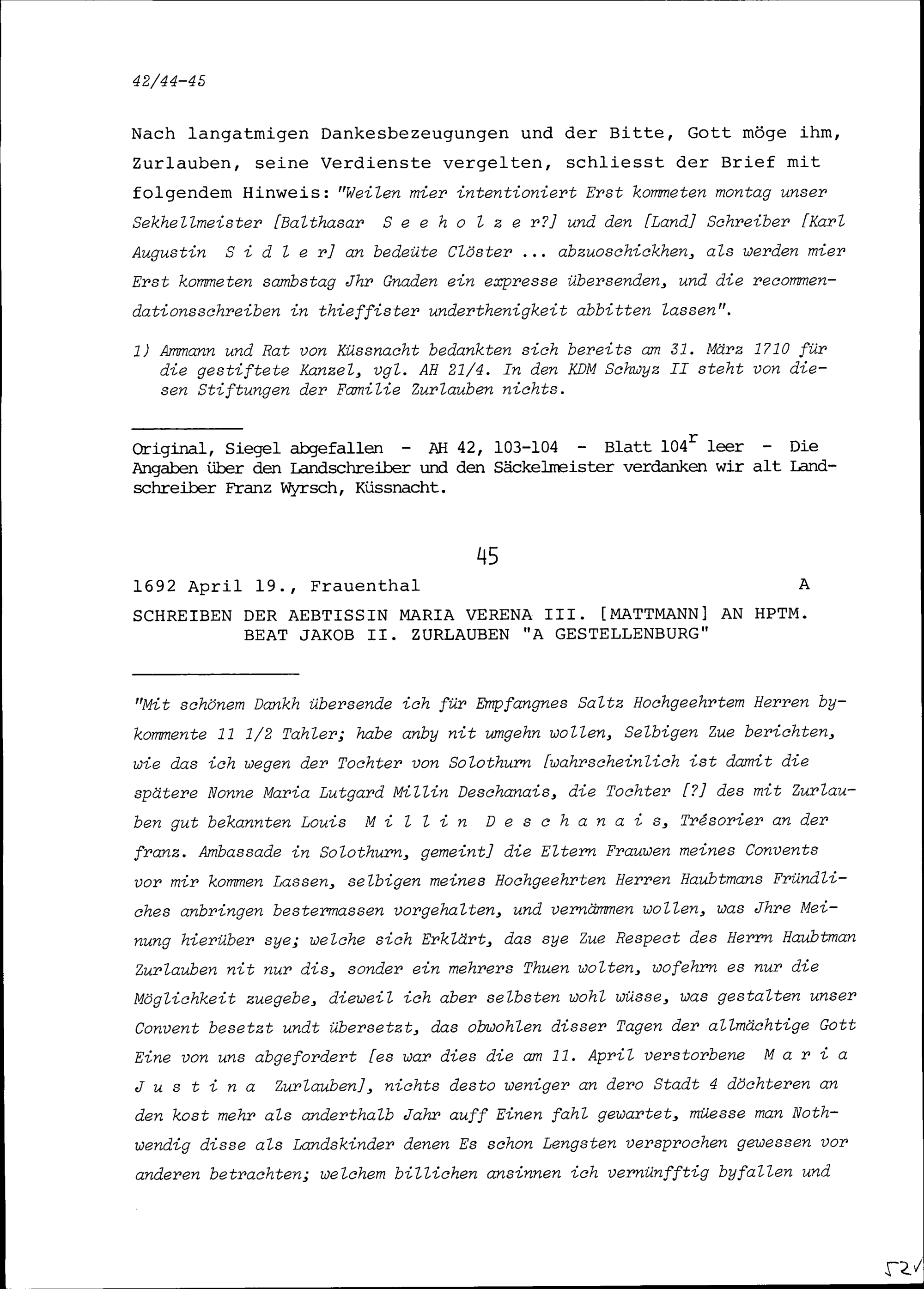 Schreiben des Ammanns und Rats von Küssnacht an Beat Jakob II. Zurlauben, Ammann, Zug