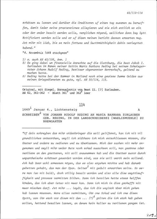 Schreiben von Johann Rudolf Reding an Beat Jakob I. Zurlauben, Hauptmann und Landschreiber...