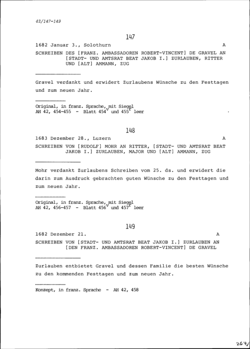 Schreiben von Beat Jakob I. Zurlauben, Stadt- und Amtrat, an Robert-Vincent de Gravel, Ambassador von Frankreich