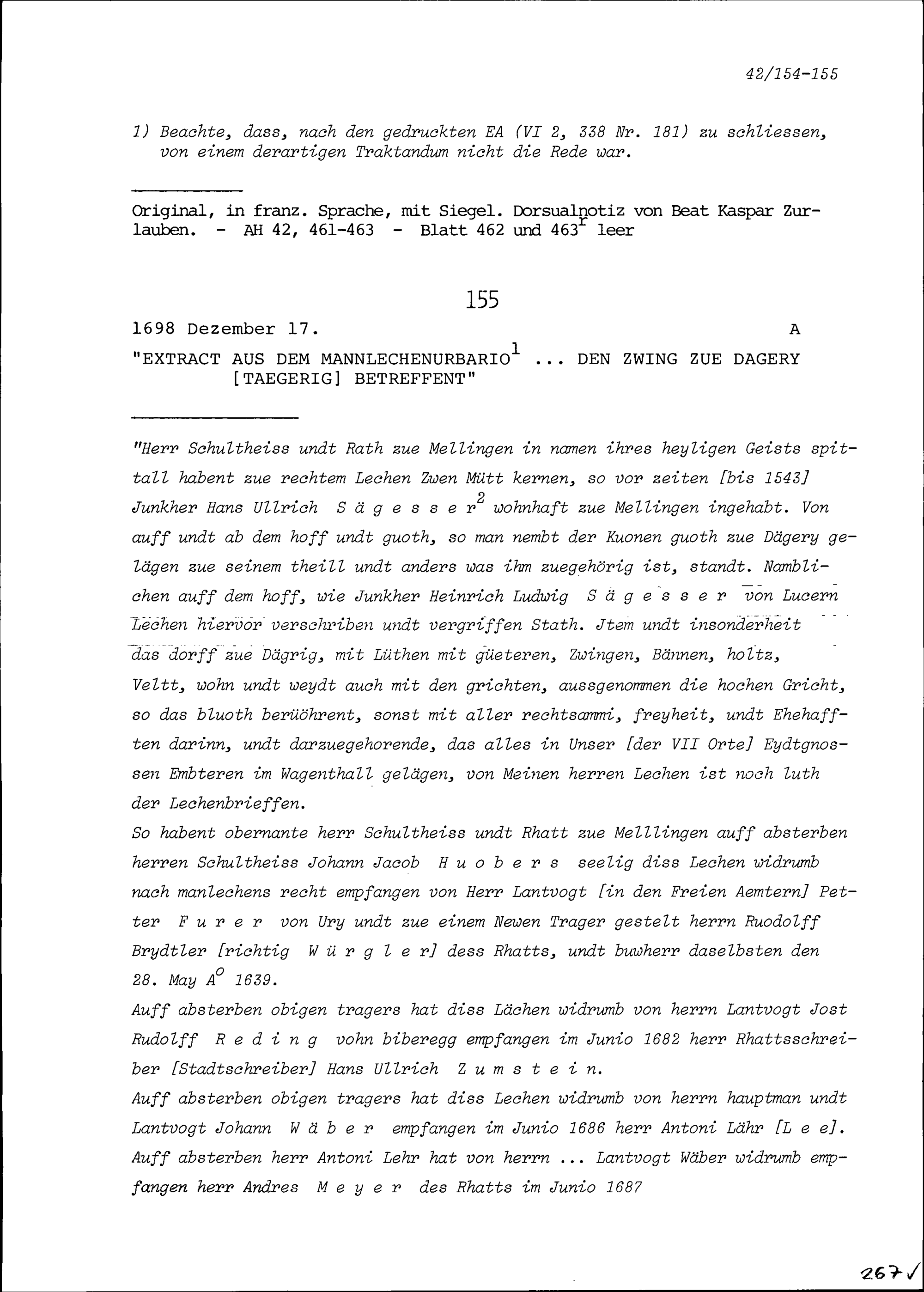 Schreiben von Michel-Jean Amelot, Ambassador von Frankreich, an Beat Kaspar Zurlauben, Stadt- und Amtrat Zug