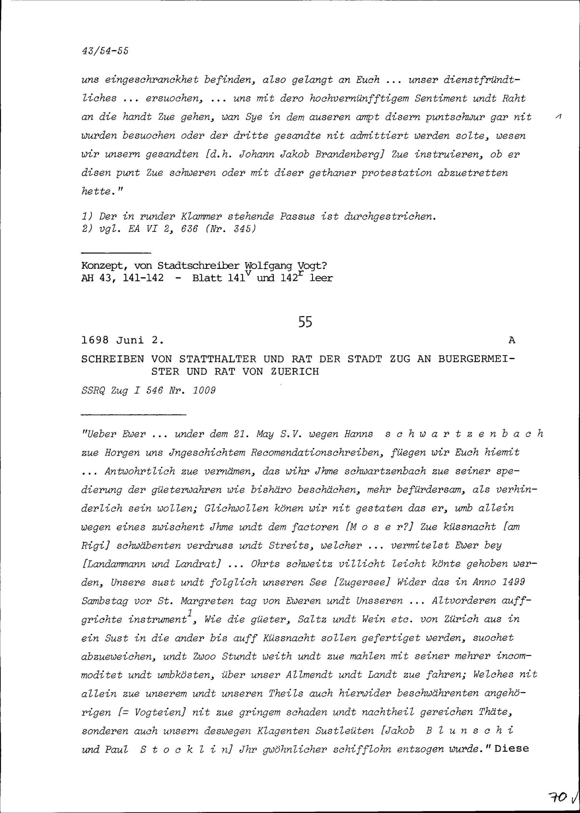 Schreiben des Statthalters und Rats der Stadt Zug an Schultheiss und Rat Luzern