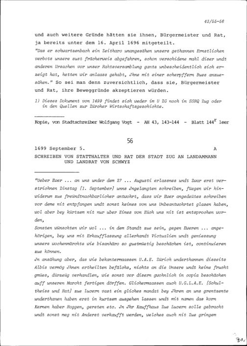 Schreiben des Statthalters und Rats der Stadt Zug an Bürgermeister und Rat Züric...