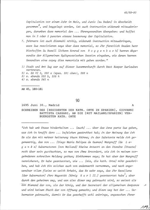 Aufzeichnung jener Themen, zu denen zusätzlich bei der Obrigkeit eine Instruktion eingeholt werden soll, während die Tagsatzung in Baden tagt