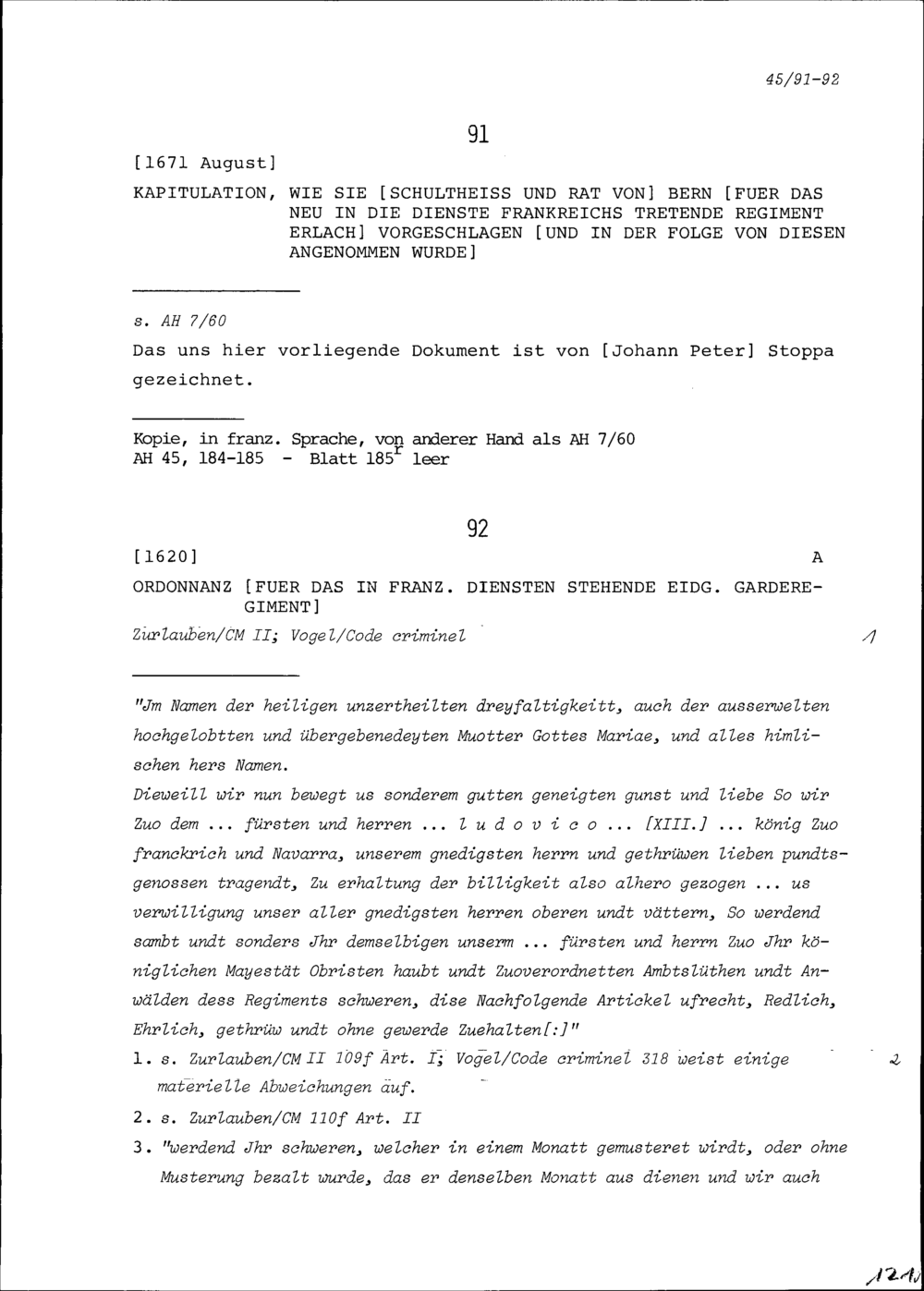 Ordonnanz für das in französischen Diensten stehende eidgenössische Garderegiment