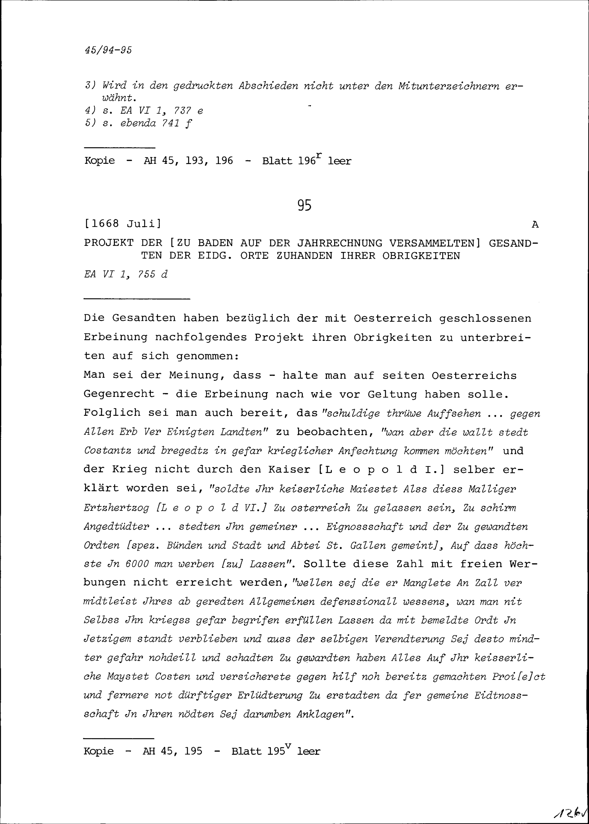 Erklärung der Tagsatzungsgesandten der Sieben Katholischen Orte Luzern, Schwyz, Unterwalden (Ob- und Nidwalden), Zug, Freiburg, Solothurn und Appenzell-Innerrhoden in Baden zuhanden von Hans Dietrich von Schönau, Gesandter von Leopold I., Kaiser des Heiligen Römischen Reiches