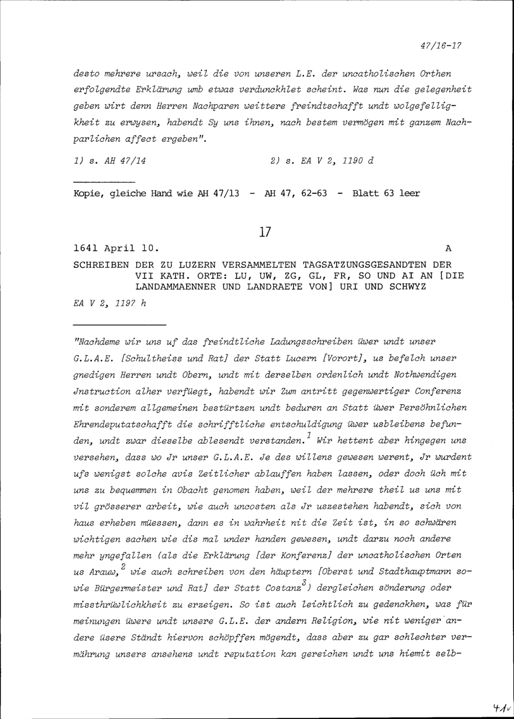 Schreiben der Tagsatzungsgesandten der Sieben Katholischen Orte Luzern, Unterwalden (Ob- und Nidwalden), Zug, Glarus, Freiburg, Solothurn und Appenzell-Innerrhoden in Luzern an Oberst und Stadthauptmann, Burgermeister und Rat der Stadt Konstanz