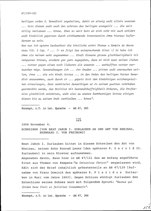 Schreiben von Beat Jakob I. Zurlauben an Ägid von Waldkirch, Abt von Muri