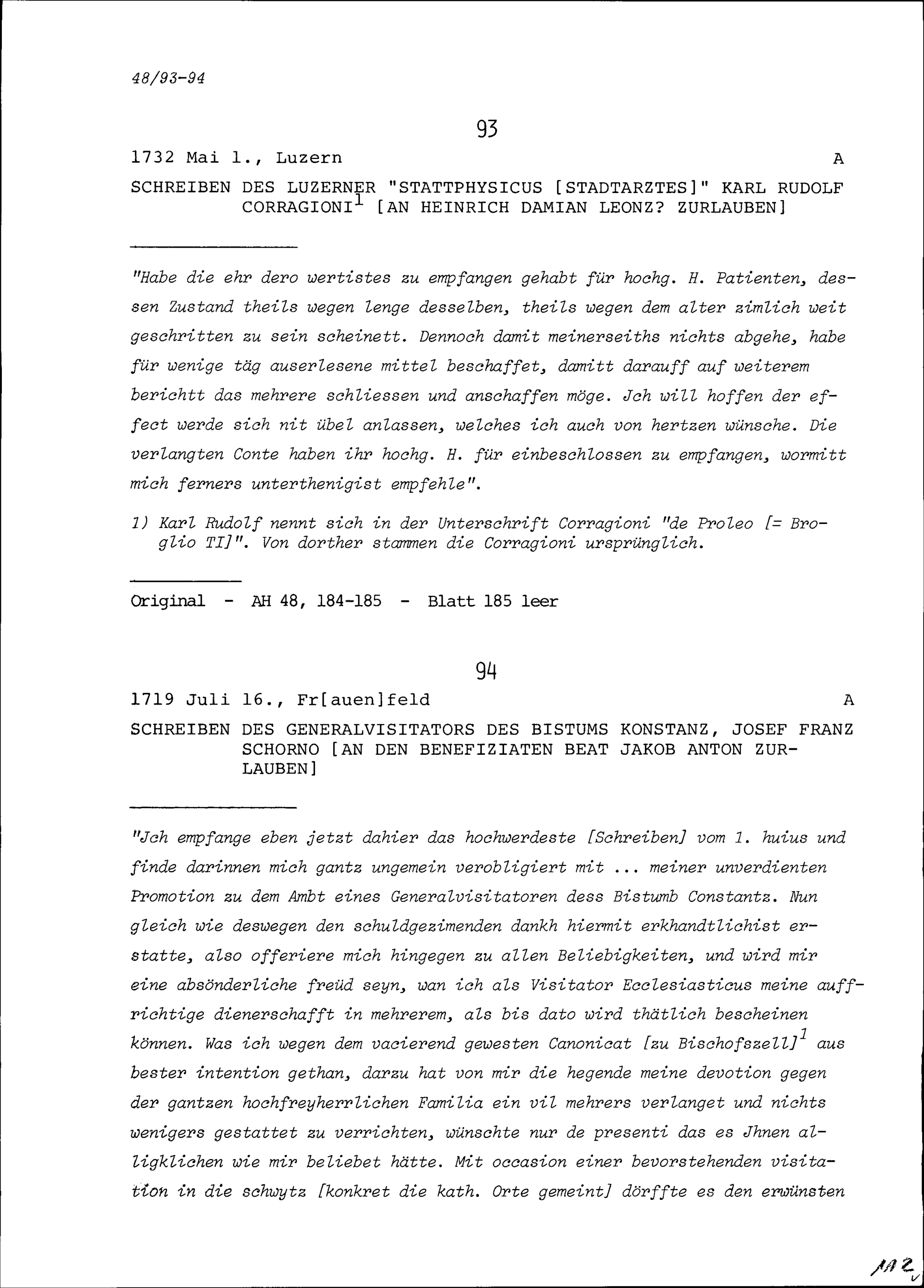 Schreiben von Josef Franz Schorno, Generalvisitator des Bistums Konstanz, an Beat...
