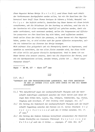 Schreiben von Äneas Crivelli, Markgraf und Ambassador von Mailand-Spanien, an Schultheissen, Landammänner und Räte der mit Mailand-Spanien verbündeten Katholischen Orte