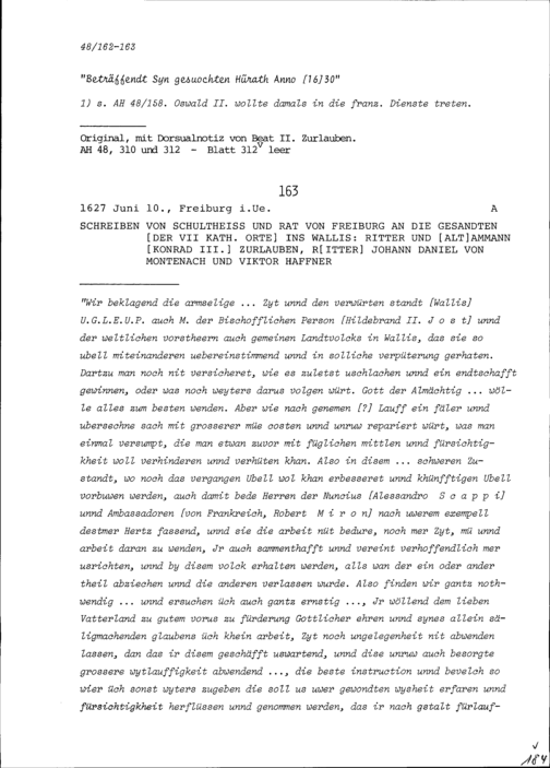 Notiz von Oswald II. Zurlauben zuhanden von Beat II. Zurlauben über seine Heirat mit der Schwester von Beat Jakob Utiger, Ammann