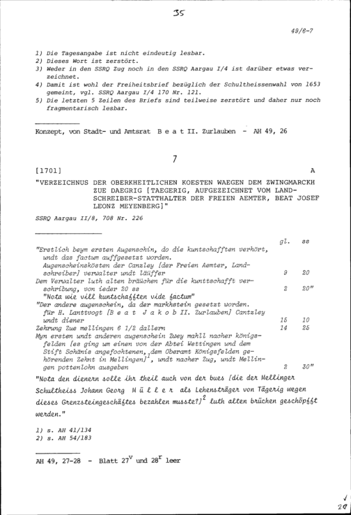 Schreiben des Ammanns (Stabführers) und Rats der Stadt Zug an Schultheiss und Rat von Bremgarten