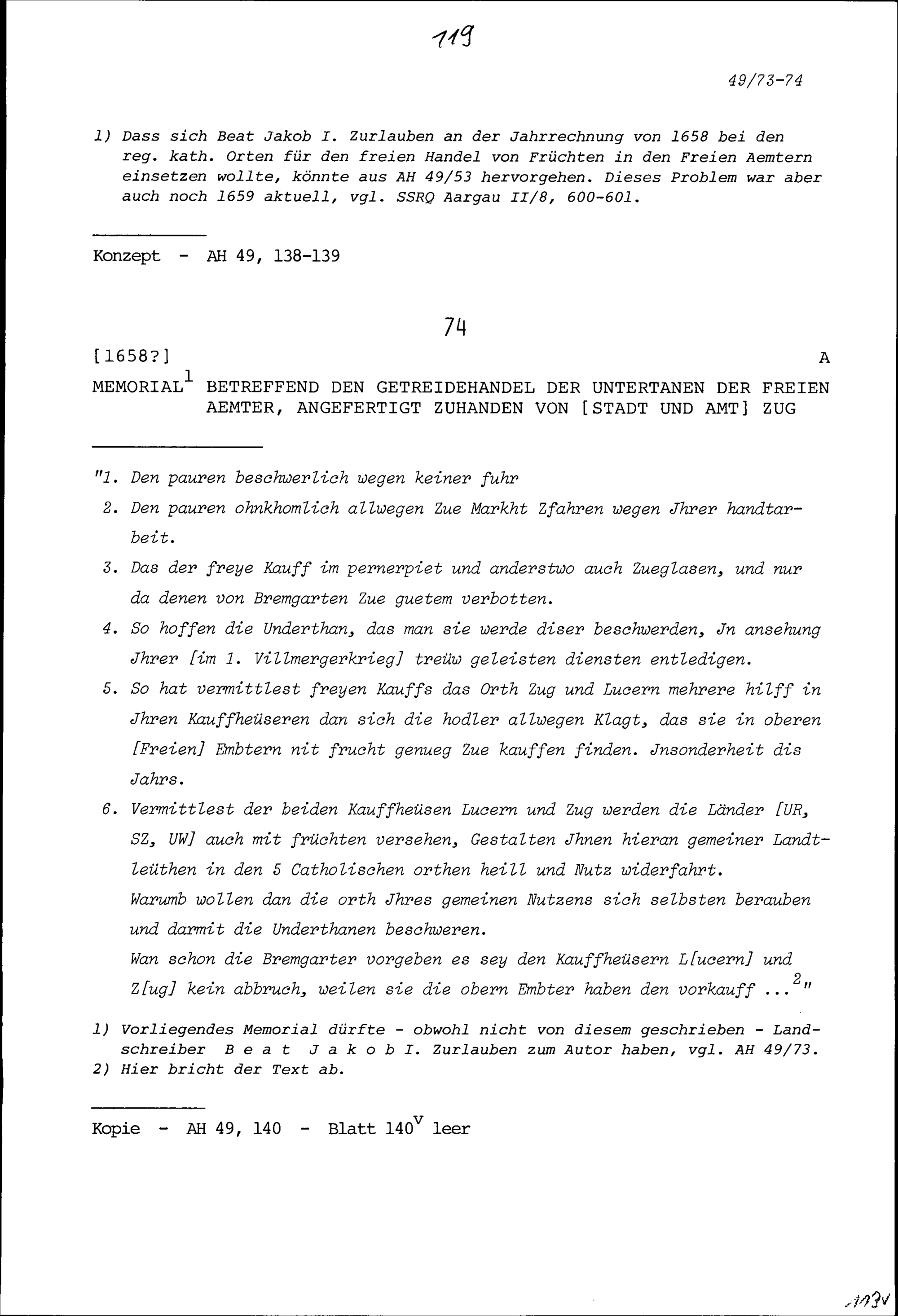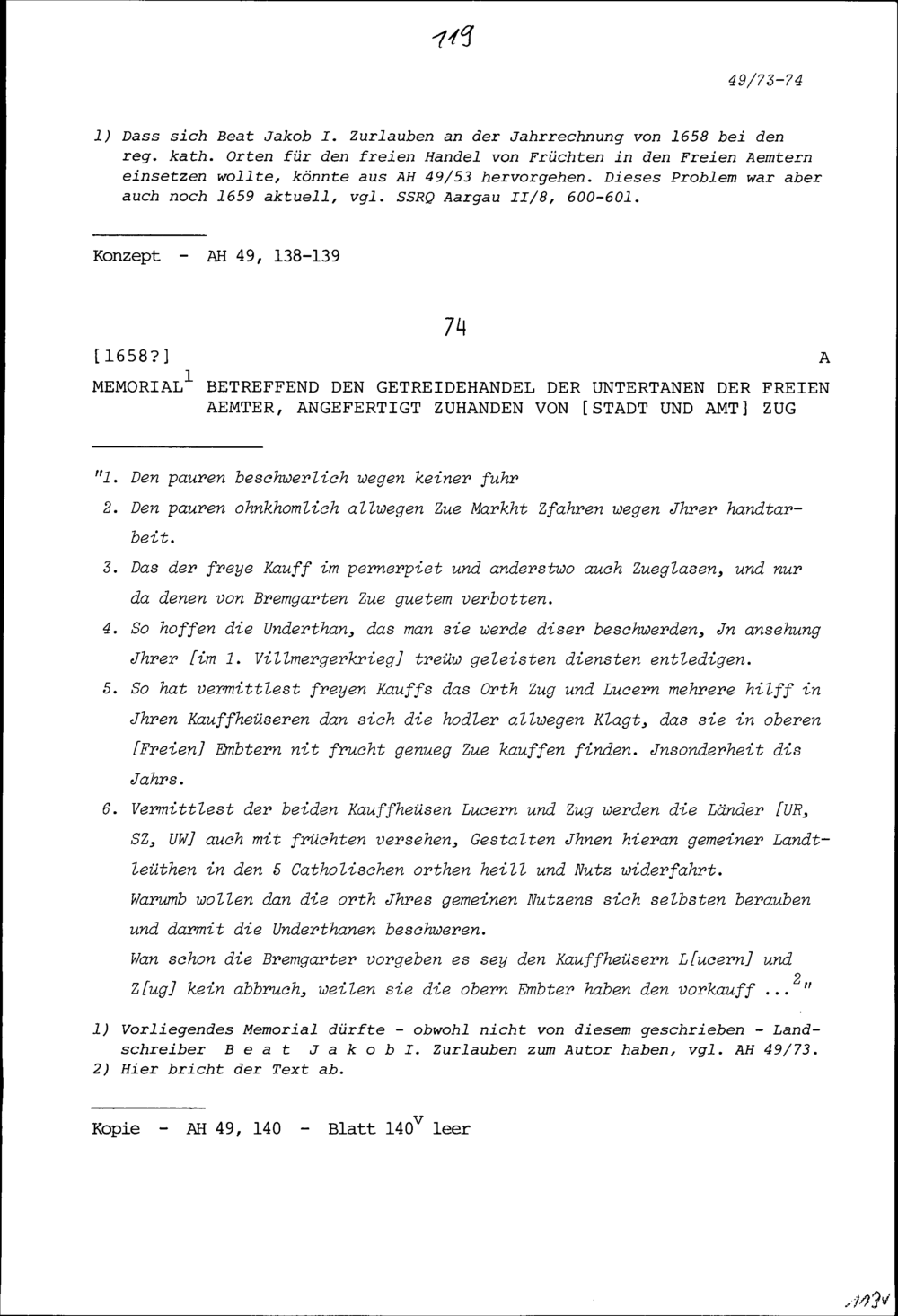 Ansprache von Beat Jakob I. Zurlauben, Landschreiber der Freien Ämter, vor den Tagsatzungsgesandten...