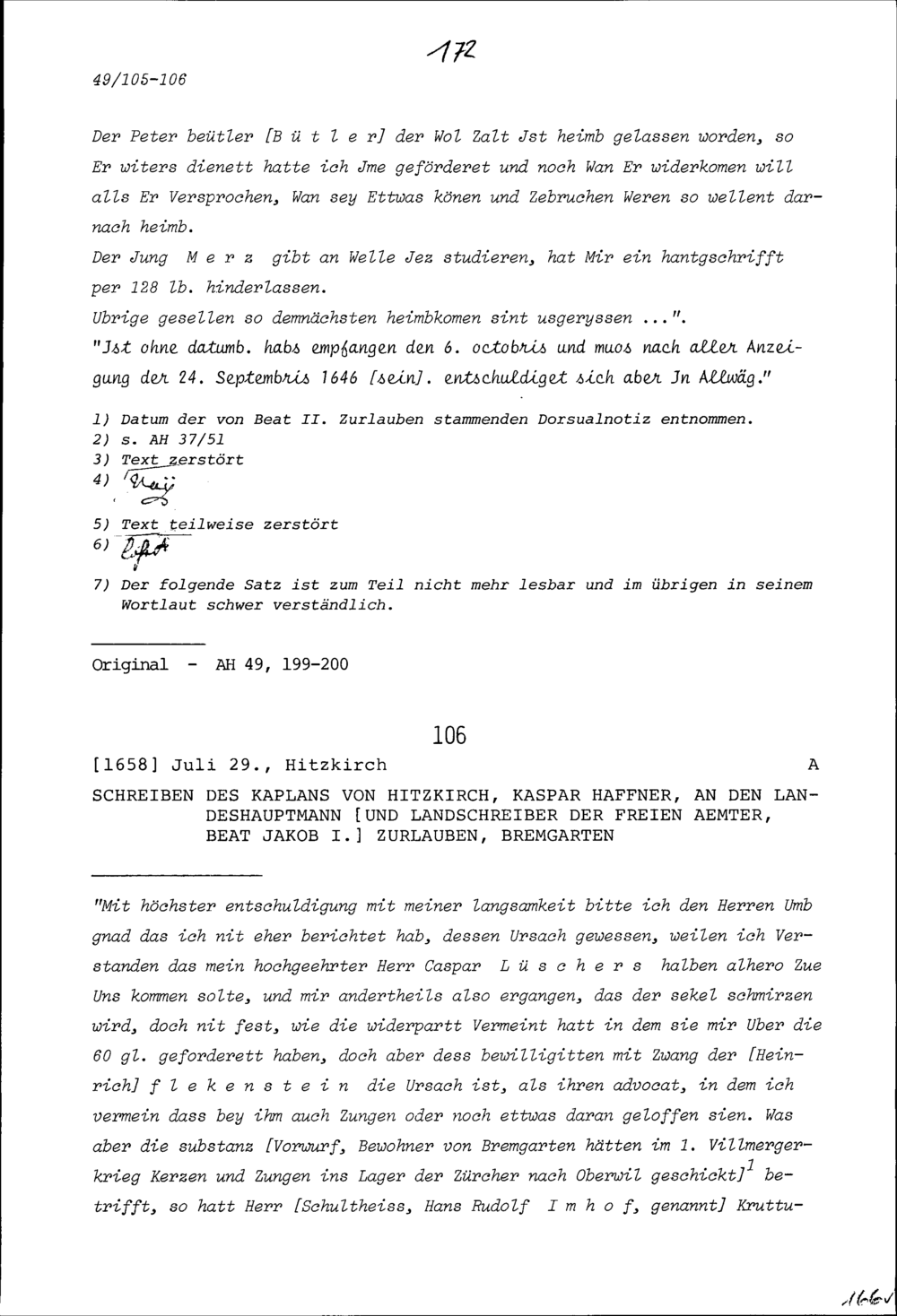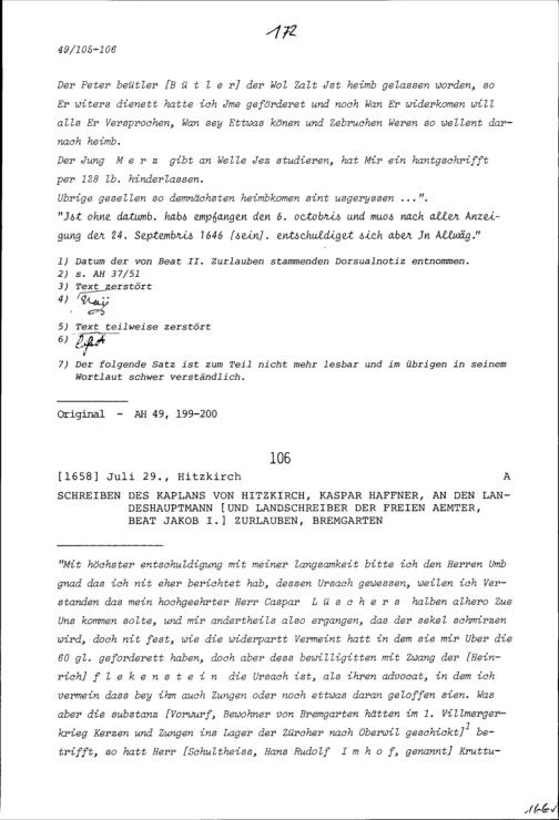 Schreiben von Heinrich I. Zurlauben, Gardehauptmann, an Beat II. Zurlauben