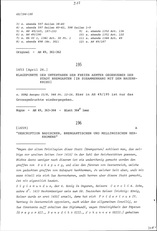 Historische Notiz zu Baden, Bremgarten und Mellingen