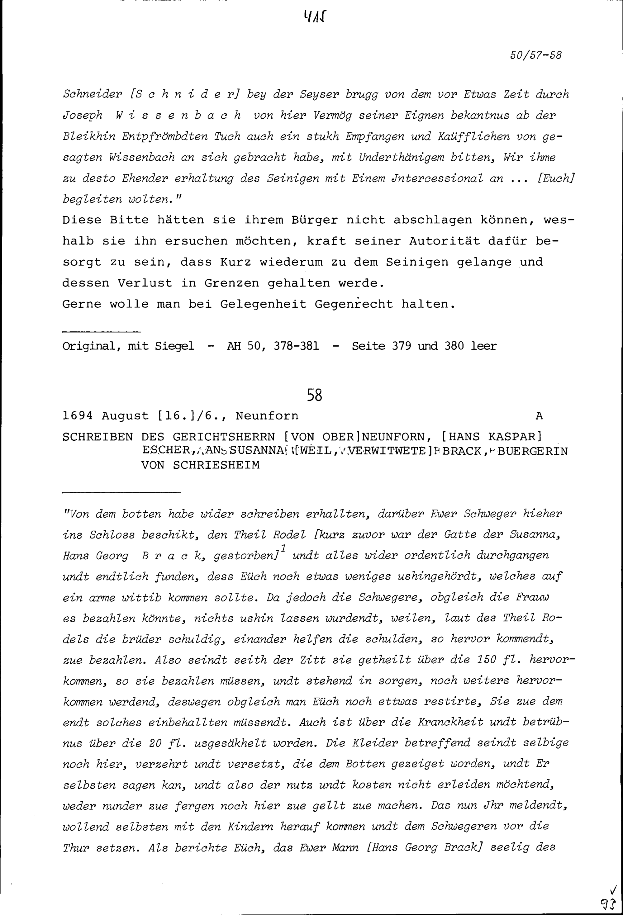 Schreiben des Schultheiss und Rats von Bremgarten an Beat Jakob II. Zurlauben, Ammann, Zug