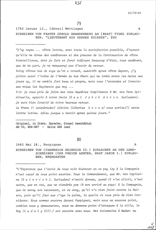 Schreiben von Heinrich II. Zurlauben, Fähnrich, an Beat Jakob I. Zurlauben, Landschreiber der Freien Ämter, Bremgarten