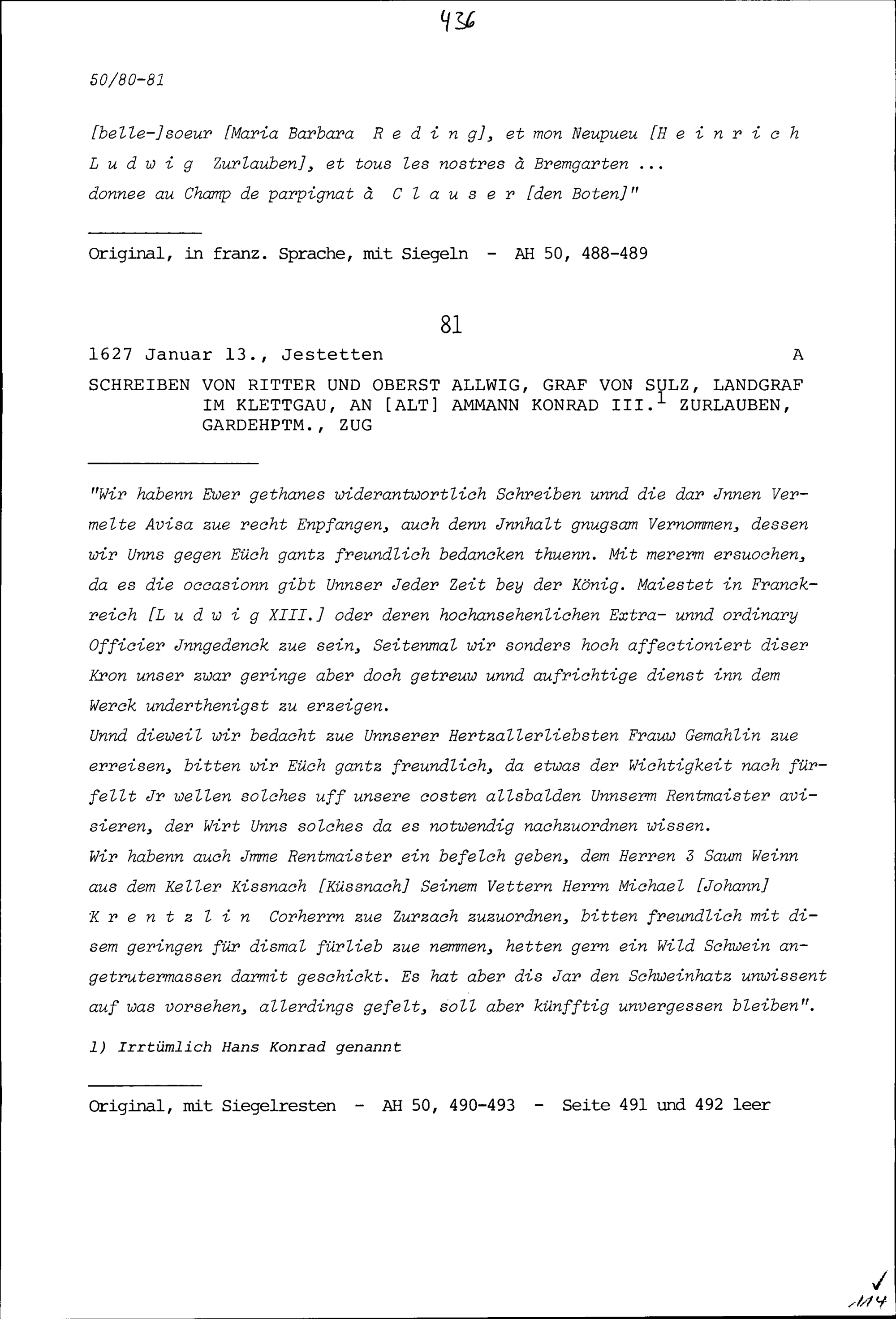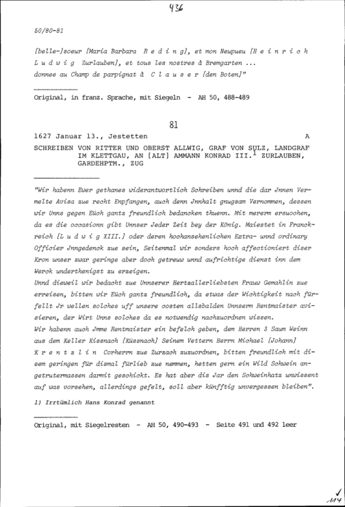 Schreiben von Heinrich II. Zurlauben, Fähnrich, an Beat Jakob I. Zurlauben, Landschreiber der Freien Ämter, Bremgarten