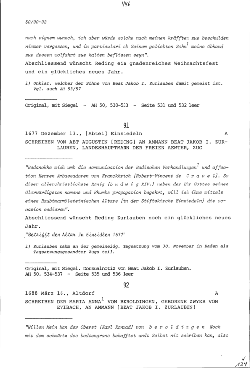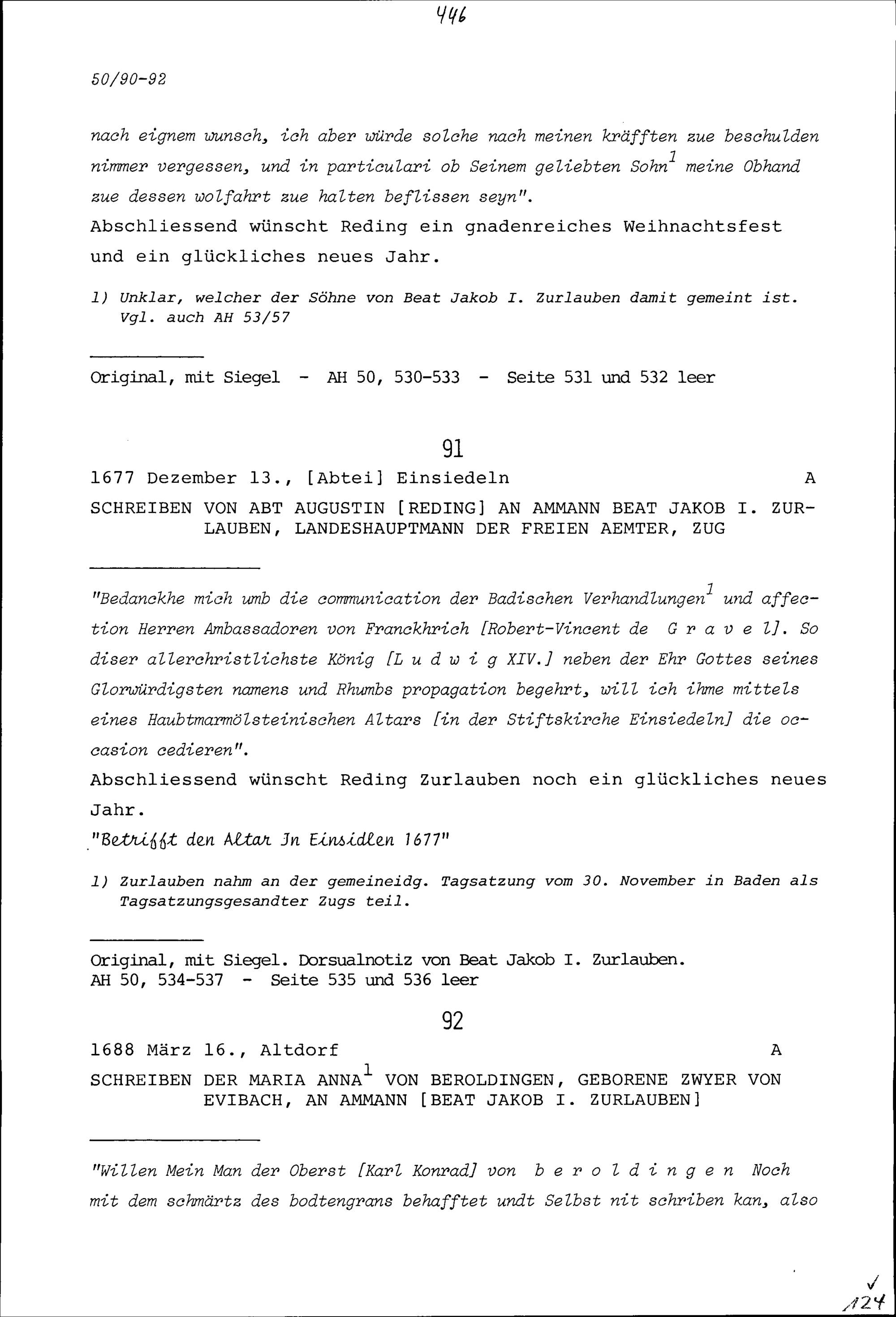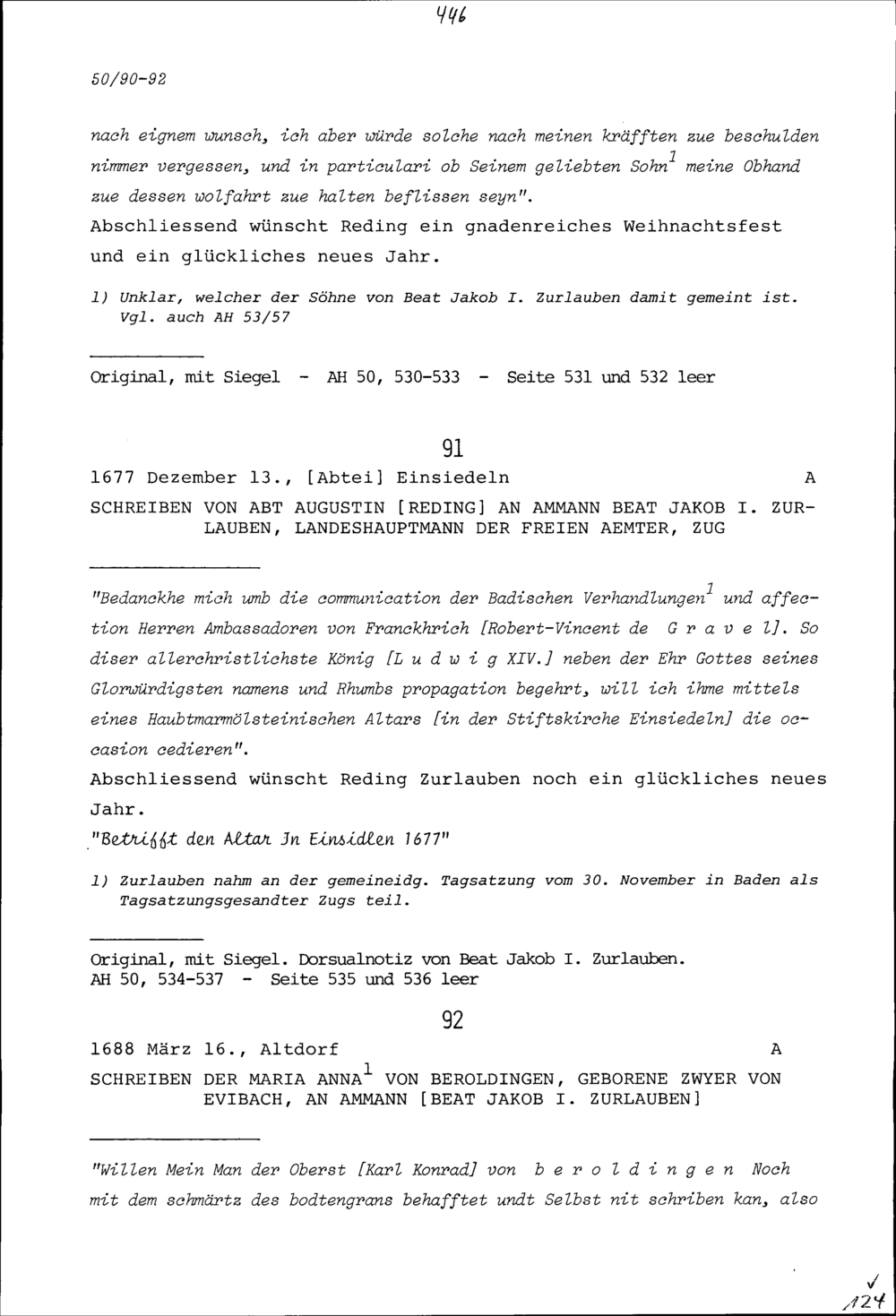Schreiben von Maria Anna von Beroldingen, geborene Zwyer von Evibach, an Beat Jakob I. Zurlauben, Ammann
