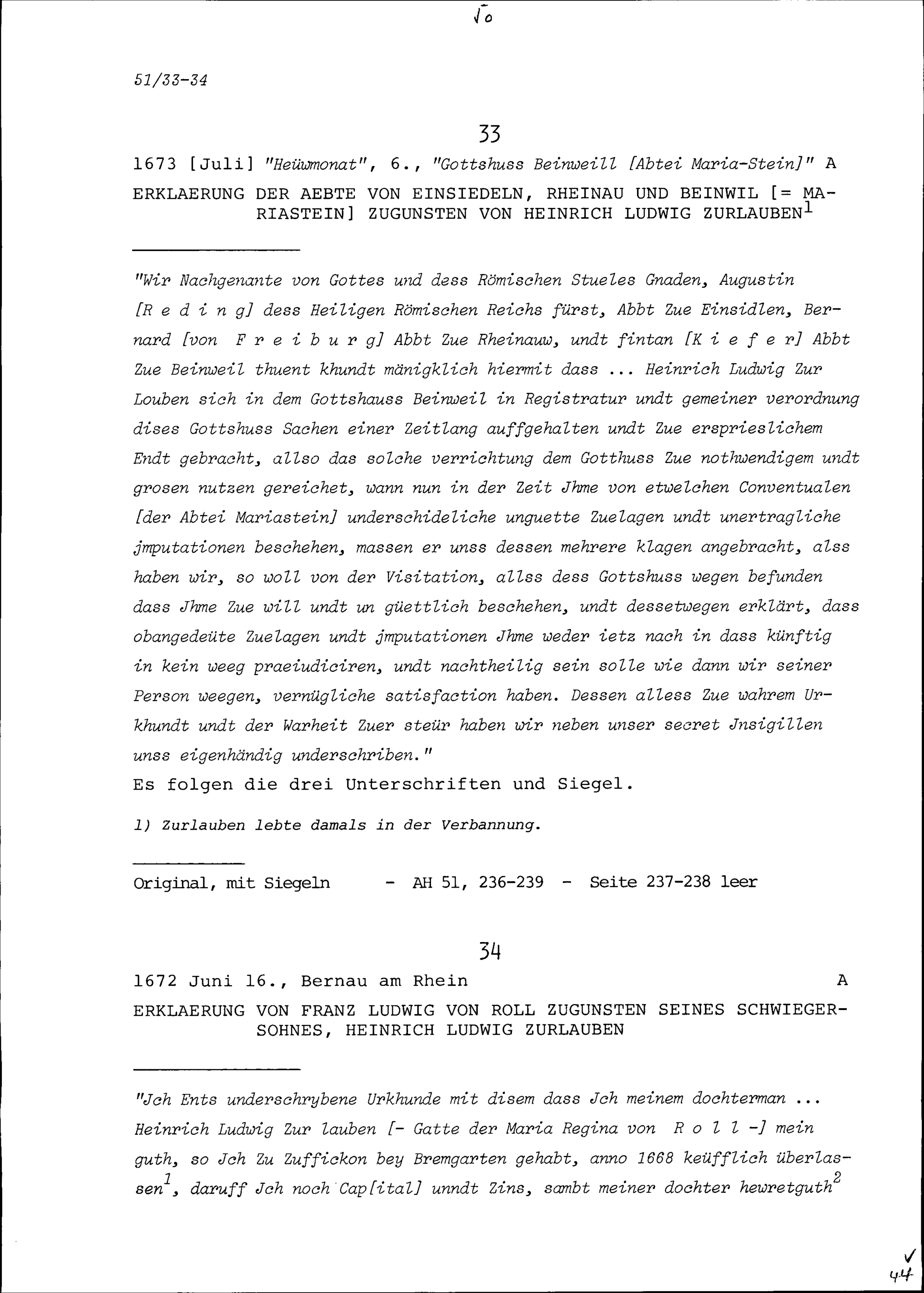 Erklärung von Franz Ludwig von Roll zugunsten Heinrich Ludwig Zurlauben, Schwieg...