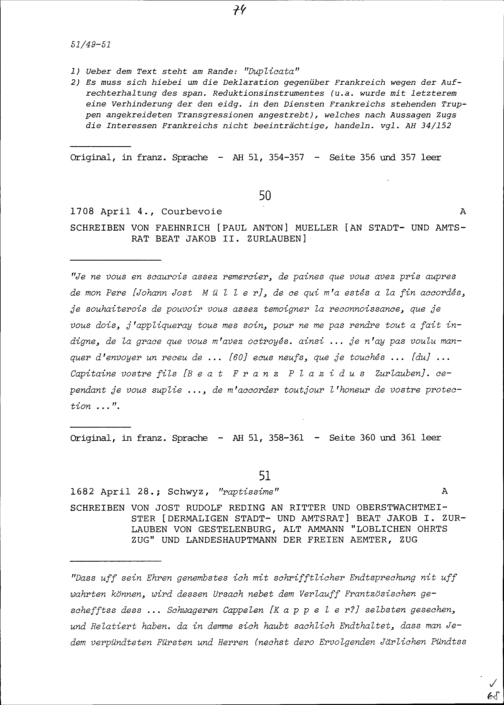 Schreiben von Jost Rudolf Reding an Beat Jakob I. Zurlauben, Stadt- und Amtrat, Altammann und Landeshauptmann der Freien Ämter, Zug