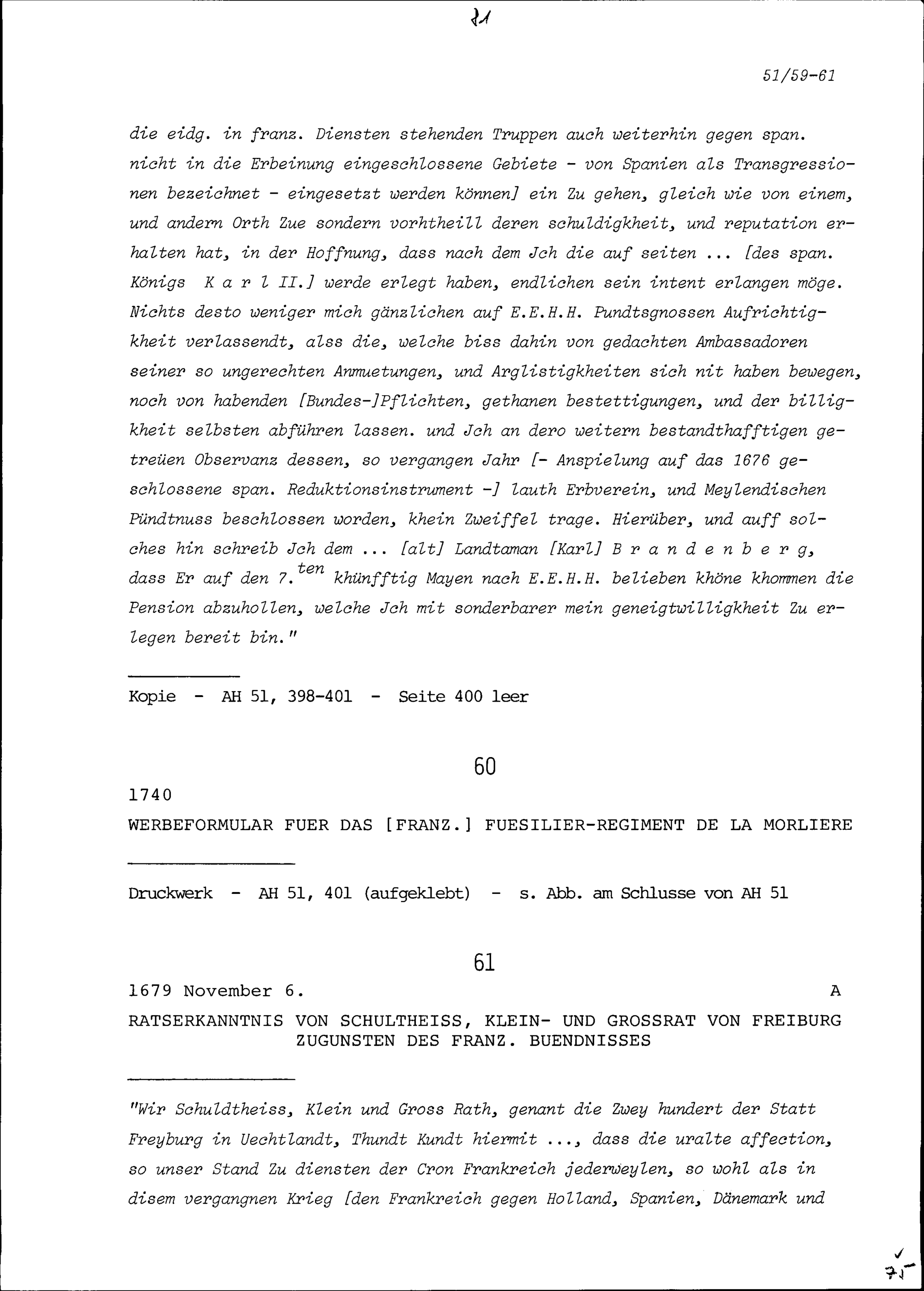 Ratsbeschluss des Schultheiss, Klein- und Grossrats von Freiburg zugunsten des französischen Bündnisses